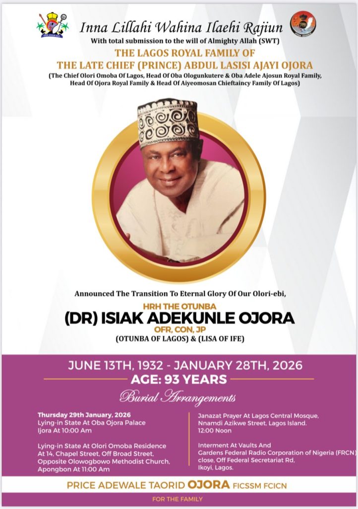 His legacy as a royal patriarch, community leader, and bridge-builder among traditions will continue to endure in the hearts of his family, the Ojora Kingdom, and the entire people of Lagos State.
